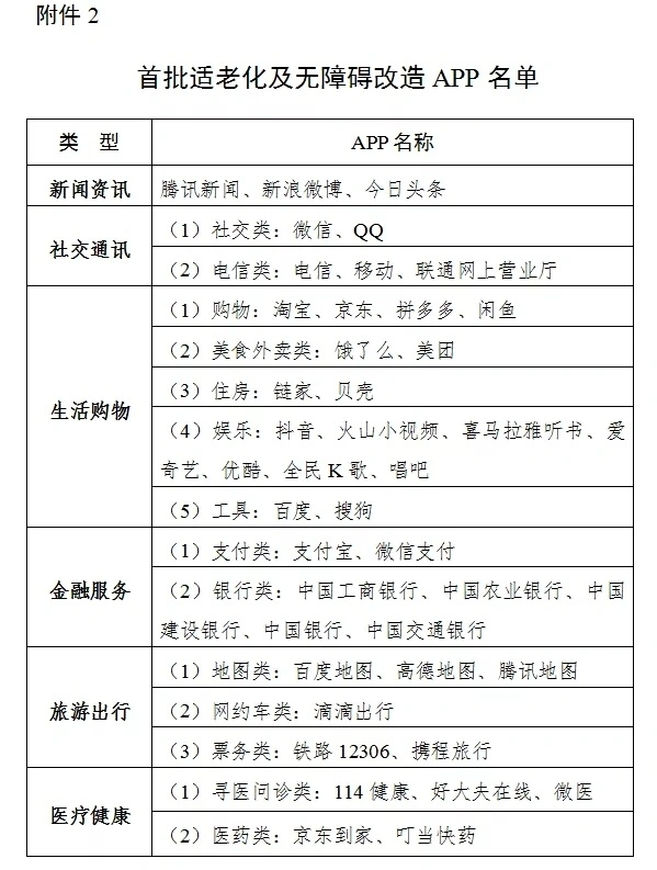 工信部首批适老化及无障碍改造APP名单