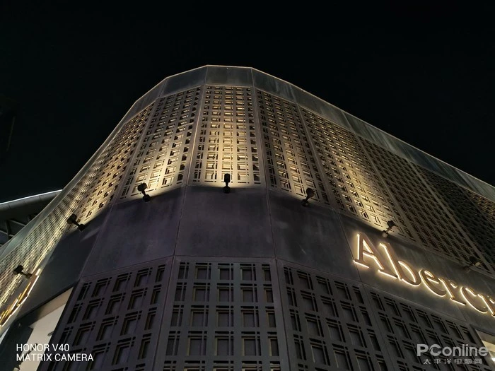 夜晚拍摄的场景光线条件还是比较暗的,但我们可以看到荣耀V40拍摄得到的成像效果优秀,画面有足够的亮度,并且能很好地控制画面噪点,纯净度也得到保证。