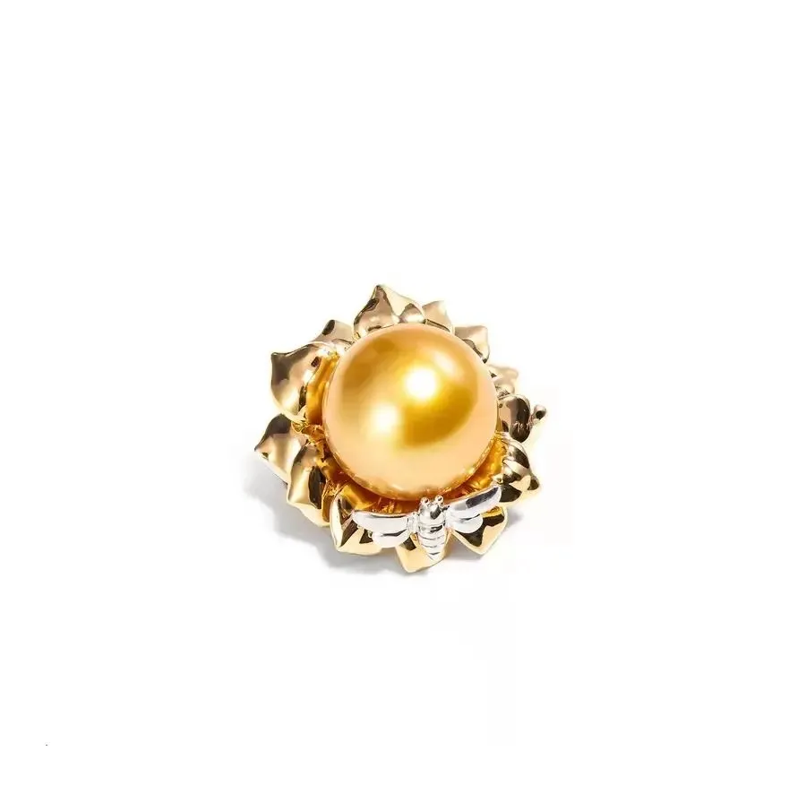热烈的太阳花:捕捉蜜蜂停留的瞬间,仿佛一触摸就能感受到的不熄生命力,18k金的花瓣与花蕊间的南洋金珠,光芒如此耀眼。