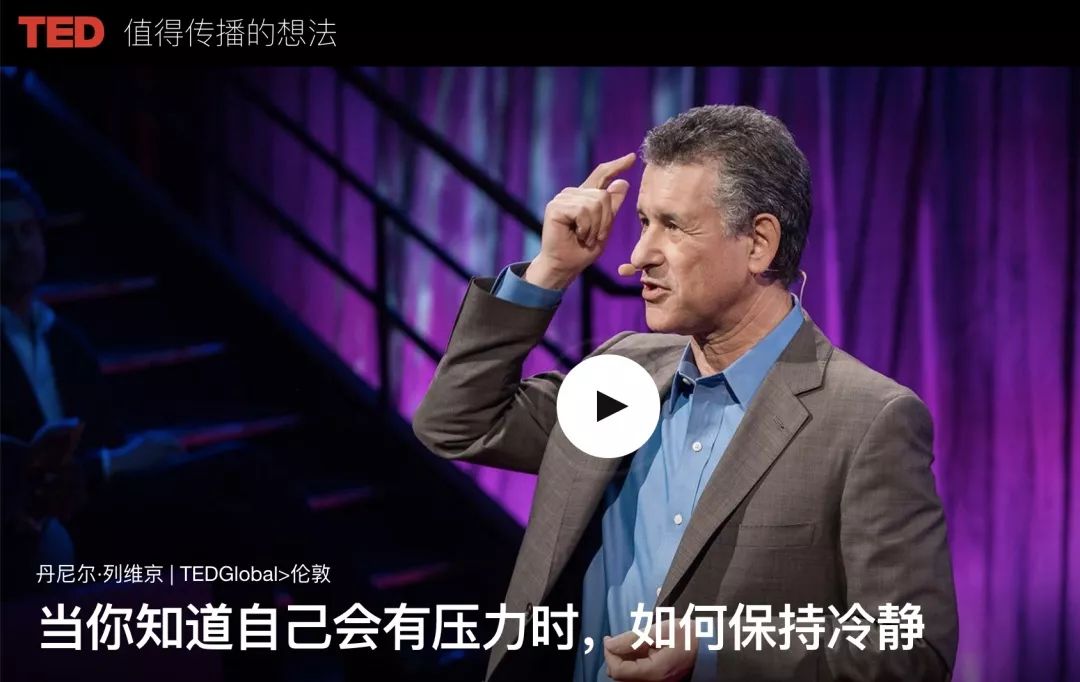 【TED演讲:遇事儿的时候如何做到处乱不惊?】人在面临压力时,头脑往往被乌云覆盖,导致思维不够清晰,从而难以做出正确和理性的判断。Daniel Levitin先生这次在台上将和大家分享他的一次尴尬经历、一组惊人的数据和一个绝妙的方法来教大家如何做到处乱不惊,临危不惧。